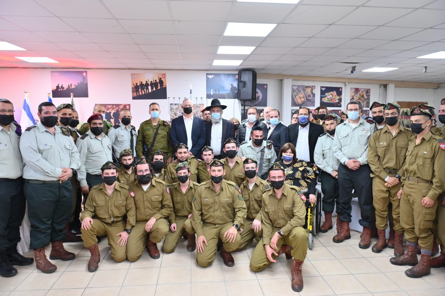 As a gesture of appreciation and a sign of trust for the ultra-Orthodox serving in the IDF, this evening the Minister of Defense, Mr. Bnei Gantz, and the Chief of Staff, Major General Aviv Kochavi, lit the first Hanukkah candle in the Netzach Yehuda Battalion near Beit El.