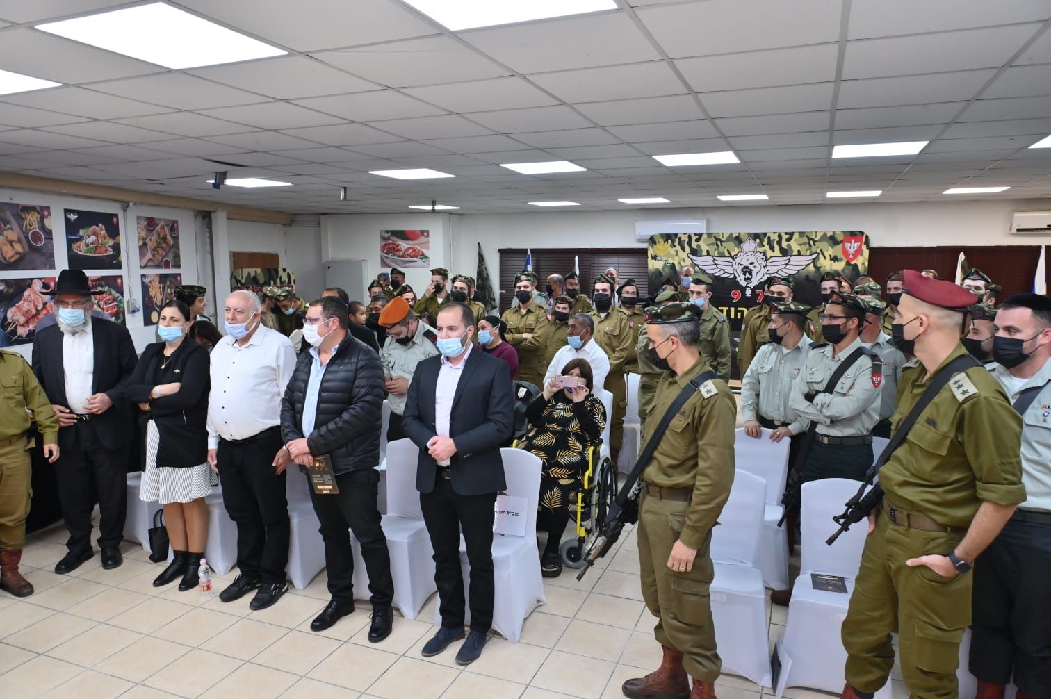 בThe event was attended by the Minister of Defense, Mr. Bnei Gantz, and the Chief of Staff, Major General Aviv Kochavi. In addition, the Commander of the Central Command, Gen. Yehuda Fux. Maj. Gen. Avi Bllut. Deputy Director General of the Ministry of Defense Mr. Moshe Tzin, Head of the Recruitment Division at the Ministry of Defense, Mr. Udi Dror, CEO of the Netzach Yehuda Association, Mr. Yossi Levy, representatives of the bereaved families and soldiers and commanders of the battalion.